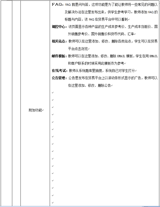 8、教(jiao)師為參(can)加(jia)實習(xi)的(de)學(xue)(xue)(xue)生(sheng)(sheng)分(fen)配角色,設定實習(xi)評分(fen)標準、實時監控學(xue)(xue)(xue)生(sheng)(sheng)的(de)操作,并且對(dui)于模擬貿(mao)易中(zhong)發(fa)生(sheng)(sheng)的(de)糾紛進行仲裁,最終利用評分(fen)系統對(dui)學(xue)(xue)(xue)生(sheng)(sheng)的(de)實習(xi)成果給予評定,教(jiao)師通過在網站發(fa)布新聞、調整商品(pin)成本和價格、調整匯率(lv)、業務(wu)費(fei)用、海運(yun)費(fei)、保險費(fei)率(lv)及(ji)突發(fa)事件的(de)發(fa)生(sheng)(sheng)概(gai)率(lv)等方(fang)式對(dui)國際(ji)貿(mao)易環境(jing)實施(shi)宏觀調控,讓學(xue)(xue)(xue)生(sheng)(sheng)在實習(xi)中(zhong)充(chong)分(fen)發(fa)揮主觀能動性(xing)