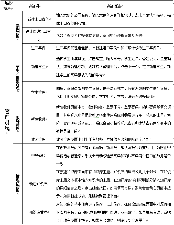 整個(ge)平臺系(xi)統的(de)(de)目標(biao)是建立(li)一個(ge)國(guo)際貿易的(de)(de)輔助教學系(xi)統,并能將(jiang)國(guo)際貿易教學過程中所需(xu)要的(de)(de)各(ge)實踐點進(jin)行較好的(de)(de)體現。