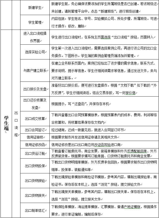 本教學(xue)(xue)平臺軟(ruan)件可以配合國際貿易(yi)實務或者進(jin)(jin)出口(kou)實務課(ke)程(cheng),在教學(xue)(xue)過程(cheng)中同步進(jin)(jin)行(xing)上機操作實習。也可用作課(ke)堂教學(xue)(xue)完(wan)畢后(hou),讓學(xue)(xue)生進(jin)(jin)行(xing)整體流程(cheng)的上機操作實習。