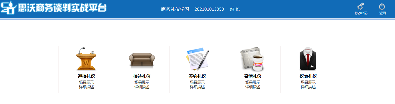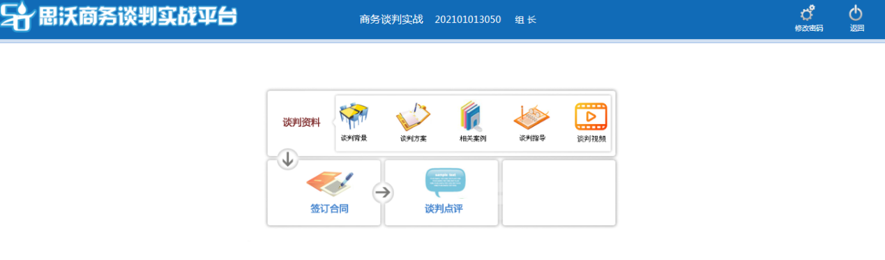 思沃國(guo)(guo)際商務談(tan)判實(shi)訓平(ping)臺(tai)系統采用了源于國(guo)(guo)外知名商學(xue)院的(de)商務談(tan)判經典案例素材,結合近10年(nian)來(lai)應用于中國(guo)(guo)學(xue)生的(de)教(jiao)學(xue)實(shi)踐經驗加以修訂和(he)完善,形成了與教(jiao)學(xue)課件內容和(he)進程相配(pei)合的(de)7個(ge)模擬談(tan)判實(shi)踐單元。