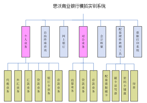 該系(xi)統(tong)(tong)(tong)從教學的(de)(de)(de)軟件、硬件建設(she)(she),以滿足對(dui)銀(yin)行(xing)(xing)實(shi)訓系(xi)統(tong)(tong)(tong)的(de)(de)(de)建設(she)(she)要(yao)求(qiu)達(da)到與(yu)銀(yin)行(xing)(xing)一樣的(de)(de)(de)仿(fang)真效果,使學生(sheng)可(ke)(ke)以在仿(fang)真的(de)(de)(de)銀(yin)行(xing)(xing)環境中,面(mian)對(dui)銀(yin)行(xing)(xing)每日的(de)(de)(de)工作(zuo)開(kai)始模擬操作(zuo),實(shi)現掌(zhang)握銀(yin)行(xing)(xing)柜員的(de)(de)(de)主要(yao)業務操作(zuo)和各種業務單(dan)據的(de)(de)(de)使用,使學生(sheng)可(ke)(ke)以更快的(de)(de)(de)適應工作(zuo)要(yao)求(qiu)。系(xi)統(tong)(tong)(tong)由核(he)心業務和外圍業務組成。核(he)心業務包括個人業務和對(dui)公業務,外圍業務包括網上銀(yin)行(xing)(xing)、銀(yin)行(xing)(xing)自(zi)助終端查(cha)詢、會計(ji)核(he)算、磁卡及密碼小鍵(jian)盤支持系(xi)統(tong)(tong)(tong)和單(dan)據存折打印支持系(xi)統(tong)(tong)(tong)。
