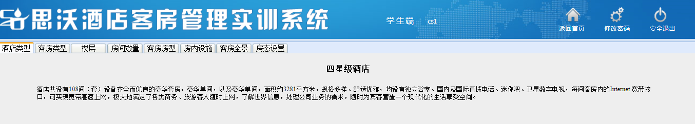 關鍵詞:思沃高校酒店客(ke)(ke)房(fang)管理教學實(shi)訓系統 酒店客(ke)(ke)房(fang)管理實(shi)訓教學軟件 酒店客(ke)(ke)房(fang)管理實(shi)訓教學平(ping)臺
