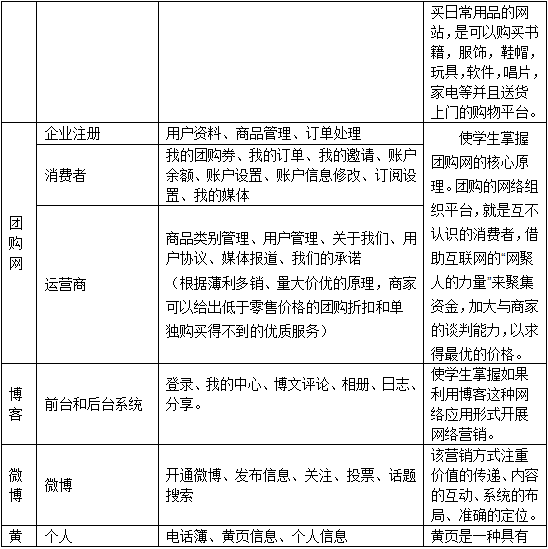 5、通(tong)過學(xue)生(sheng)(sheng)的(de)(de)分組,開展各式各樣(yang)的(de)(de)網(wang)(wang)絡(luo)營(ying)(ying)銷活(huo)動的(de)(de)流程(cheng),體會不同層次的(de)(de)網(wang)(wang)絡(luo)營(ying)(ying)銷給企業帶(dai)來的(de)(de)機(ji)遇。而普通(tong)消費者(zhe)也可(ke)以(yi)通(tong)過進(jin)入(ru)網(wang)(wang)絡(luo)環境(jing),訪(fang)問上述網(wang)(wang)站,使用個人郵件服(fu)務等感(gan)受到企業網(wang)(wang)絡(luo)營(ying)(ying)銷的(de)(de)影響力(li)。學(xue)生(sheng)(sheng)通(tong)過親身操作軟件,可(ke)以(yi)體會到網(wang)(wang)絡(luo)營(ying)(ying)銷與傳(chuan)統(tong)營(ying)(ying)銷的(de)(de)區別與聯系,了解(jie)各種網(wang)(wang)絡(luo)營(ying)(ying)銷策略以(yi)及如(ru)何具體實施(shi)。